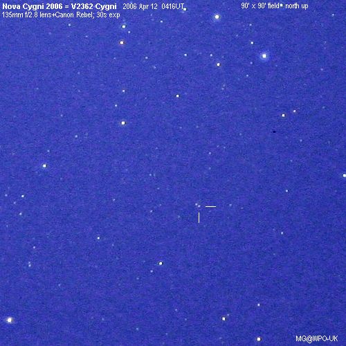 GemU Gem: Page 2011 March 23 (Buczynski).HerPR Her: 2011 December 3 (Buczynski). V478 Her: 2006 April 27 (Mobberley),V589 Her: 1999 October 2 (Mobberley), 2005 July 4 (Shears). V592 Her: Page V844 Her: Chart V446 Her = N. Her 1960: Page FSV J1722+2723: 2005 May 10 (Shears). VHer04: 2004 June 24 (Gavin), 2004 June 27 - spectrum (Gavin) SDSS J170213+322954: 2005 October 5 (Shears), LynSDSS J080434+510349 2006 March 5 (Shears).EUVE J0854+390 2005 May 20 (Shears). 2005 December 3 (Shears). LMiSS LMi: 2006 October 24 (Shears).SX LMi: Page LyrV358 Lyr: 2008 November 24 (Mobberley).MonV838 Mon = (Peculiar var in Mon 2002): PageV900 Mon: 2011 November 15 (James). NorV390 Nor (N. Normae 2007): 2007 June 21 (James).OphRS Oph: 2006 February 13 (Guido/Sostero), 2006 February 14 (Guido/Sostero), 2006 February 14 (Gonano), 2006 February 14 (Gonano), 2006 February 16 (Chumack), 2006 February 16 (Guido/Sostero), 2006 February 20 (Guido/Sostero), 2006 March 2 (Gavin).V2540 Oph = N. Oph 2002: Page V2573 Oph = N. Oph 2003: 2003 July 22 (Gonano) V2574 Oph = N. Oph 2004: 2004 June 28 (Gavin), 2004 June 28 - spectrum (Gavin) V2670 Oph = N. Oph 2008 No. 1: 2008 June 11 (Gavin). V2671 Oph = N. Oph 2008 No. 2: 2008 June 11 (Gavin). V2674 Oph = N. Oph 2010: 2010 February 20 (Mobberley), OriGR Ori: 2013 February 12 (Hurst). PegDN Peg: 2011 June 3 (Baransky). IP Peg: Page Peg OT J213806.6+261957: 2010 May 9 (Mobberley), 2010 May 11 (Buczynski). PerGK Per = N. Per 1901: Page, 2008 September 26 (Mobberley), 2008 September 26 (James).PV Per: 2006 October 18 (Buczynski). TZ Per: Page QY Per: Page UV Per: Page UW Per: 2007 February 6 (Mobberley). NSV 1436: 2011 March 30 (Buczynski), 2011 March 31 (Buczynski), 2011 April 3 (Buczynski). PupV574 Pup = N. Pup 2004: 2004 November 22 (Sostero), 2004 November 27 (James), 2005 February 6 (Gavin), 2005 February 18 (Gavin).PyxT Pyx: 2011 April 17 (James).ScoU Sco: 2010 January 29 (Mobberley). 2010 January 30 (Baransky).V1186 Sco = N. Sco 2004: 2004 July 26 (Gavin), 2004 July 26 - spectrum (Gavin) V1187 Sco = N. Sco 2004 No. 2: 2004 August 19 (Gavin) V1309 Sco = N. Sco 2008 2008 September 12 (Gavin), 2008 September 13 (Gavin). V1310 Sco = N. Sco 2010 2010 February 23 (Mobberley), V1311 Sco = N. Sco 2010, No. 2 2010 April 27 (Mobberley). SctV475 Sct = N. Sct 03: 2003 August 31 (Gavin), 2003 August 31 - spectrum (Gavin), 2003 September 17 (Gavin), 2003 September 17 - Spectrum (Gavin)V476 Sct = N. Sct 05: 2005 October 1 (Buczynski). Lightcurve. V477 Sct = N. Sct 05 No 2: 2005 October 16 (Sostero). Lightcurve. V496 Sct = N. Sct 2009 Lightcurve (V3). SgeAW Sge: 2006 November 16 (Shears),WZ Sge: Page SgrV4742 Sgr = N. Sgr 2002 No. 2: PageN. Sgr 2002 No. 3: Page V5113 Sgr = N. Sgr 03 No. 2: 2003 September 28 (Gavin), 2003 September 29 - Spectrum (Gavin) V5116 Sgr = N. Sgr 05 No. 2: 2005 July 5 (Sostero), 2005 July 10 (Gavin), 2005 July 17 (Gavin). V5579 Sgr = N. Sgr 08: 2008 April 19 (Mobberley). TauRR Tau: 2012 September 26 (James).V701 Tau: 2005 December 6 (Shears). V1208 Tau: 2008 December 26 (Mobberley). TriUW Tri = N. Tri 1983: PageUMaBC UMa: Page2009 October 1 (Mobberley). BZ UMa: 2005 January 16 (Gavin), KV UMa = XTE J1118+480: Page SU UMa: Page SW UMa: Page Markarian 421: 2002 April 7 (Fletcher) VulTY Vul: 2005 July 16 (Shears).V458 Vul = N. Vul 2007: 2007 August 8 (Miles), 2007 August 9 (James). 2007 August 9 (Arditti), 2007 August 9 (James), 2007 August 9 (James), 2007 August 9 (Mobberley), 2007 August 10 (James), 2007 August 10 (Arditti), 2007 August 11 (James), 2007 August 22 (Buczynski), 2007 September 3 (Buczynski), 2007 September 8 (Buczynski), 2007 October 4 (Mobberley), 2007 October 14 (Mobberley), 2007 October 14 (James), 2007 December 12 (James), 2007 August 11 Spectrum (Gavin). 2008 December 26 (Mobberley), Lightcurve (V4). V459 Vul = N. Vul 2007 No. 2: 2008 January 2 (Mobberley), 2008 January 7 (Mobberley). Other objects2011 October 24 (Mobberley), 2011 September 15 (Buczynski), 2011 September 24 (Buczynski), 2011 October 5 (Buczynski). 2012 March 27 (James), 2012 January 31 (Buczynski), 2012 September 18 (James), 2012 July 22 (James), 2012 July 8 (Mobberley), 2012 March 20 (James), 2011 December 5 (James), 2011 November 20 (Buczynski), 2011 November 17 (James),Extragalactic novaeM31Nova in M31, 1998: PageNova in M31, 2003 September: 2003 September (Boles) Probable nova in M31, 2003 December: 2003 December 18 (Mobberley) Nova in M31 (M31N 2004-11a): 2005 January 10 (Arbour) Nova in M31 (2006 nr. 7): 2006 September 3 (James), 2006 September 4 (Remanzacco Obs). M32Nova in M32, 2006: 2006 August 22 (James), 2006 August 24 (James).M812007 April 15 (Remanzacco Obs).Variable surveyMike Collins has been carrying out a detailed survey of the Milky Way and has found many uncatalogued variables. Here is a list.Other information on variables can be found at the following URLs: |