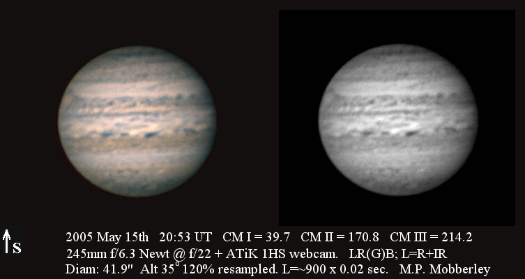 Images of Jupiter from Martin Mobberley (mpm), Nigel Bryant (nb1), Damian Peach (peach).